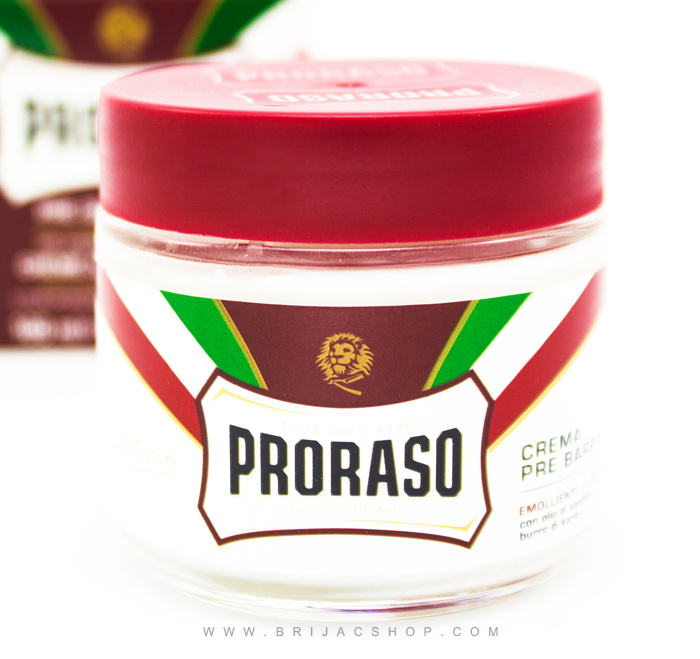 Proraso crvena krema pogodna je za tretman pre i negu posle brijanja. Preporučuje se za suvu kožu i guste, grube brade. Idealan način pripreme za detaljno i udobno brijanje, omekšava bradu i priprema kožu za klizanje brijača. Ostavlja kožu mekom i zaštićenom. Obogaćena uljem sandalovine i ši baterom, duboko neguje kožu održavajući je mekom i prilagodljivom. Omekšava bradu radi lakšeg brijanja.